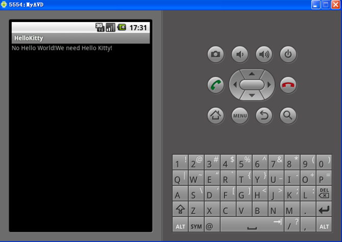 配好了Android sdk,写了个Hello Kitty测试了下。